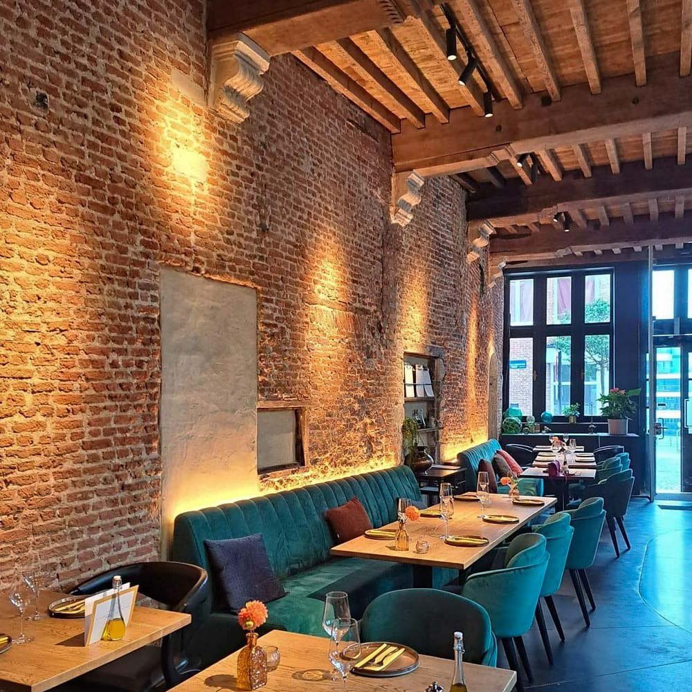 In Tinèlle ga je voor meer dan een smaakvol bord, je proeft er ook een stukje geschiedenis. Plaats van gebeuren is ‘Het Predikheren’, een voormalig klooster en militair hospitaal uit de zeventiende eeuw dat vandaag is omgetoverd tot culturele hotspot. In de linkervleugel, waar ooit de monniken op doorreis van hun nachtrust genoten, etaleren Ken Verschueren en Jenny Callens vandaag hun liefde voor het vak.