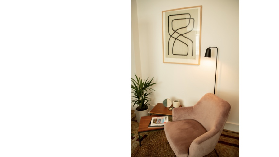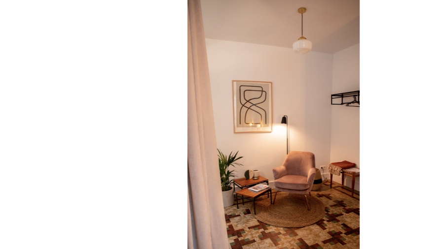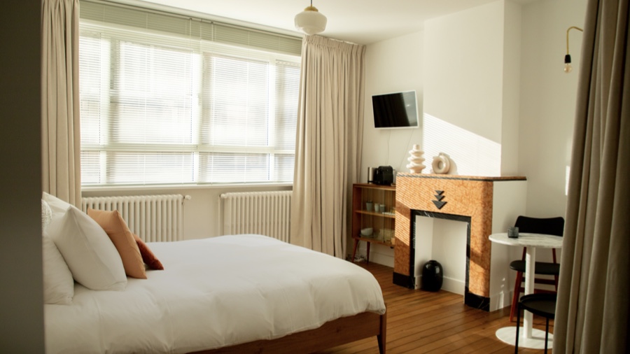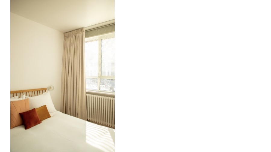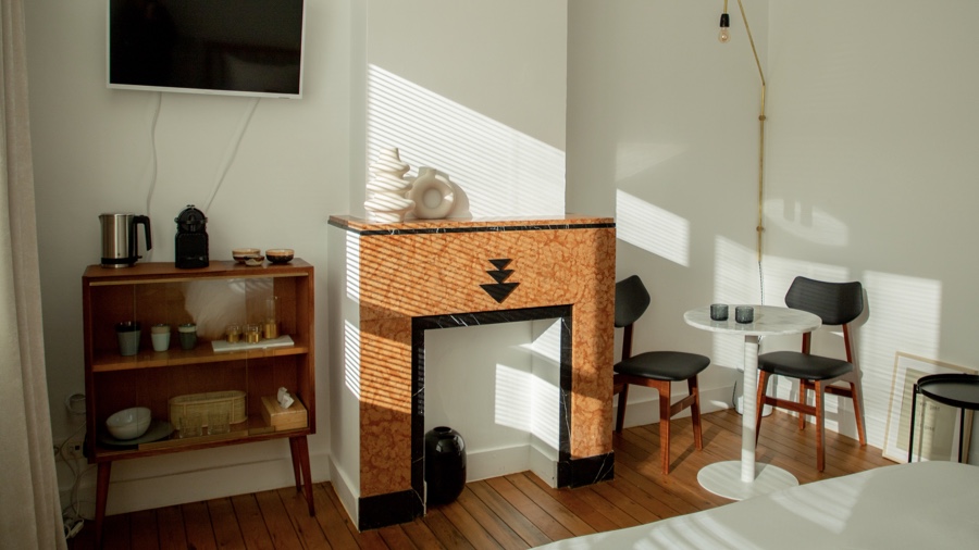 Kamer 00 is gelegen op het gelijkvloers. De inrichting is een combinatie van vintage en nieuw.